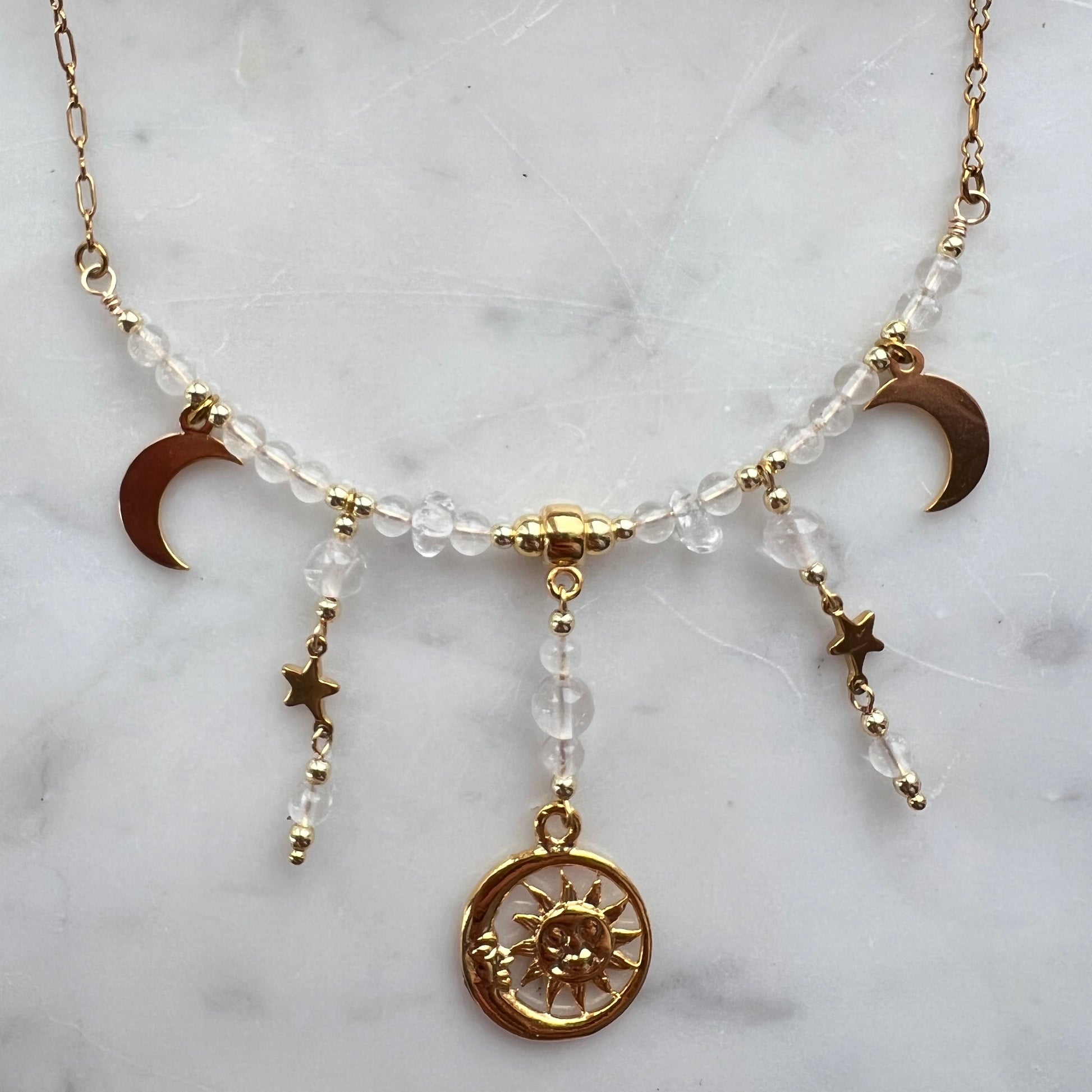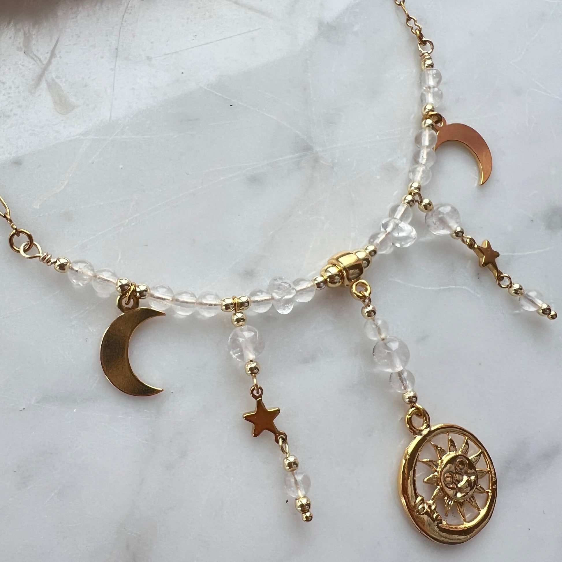 A completely unique necklace in a shorter model. Here amethysts create magic together with a lovely moon charm.