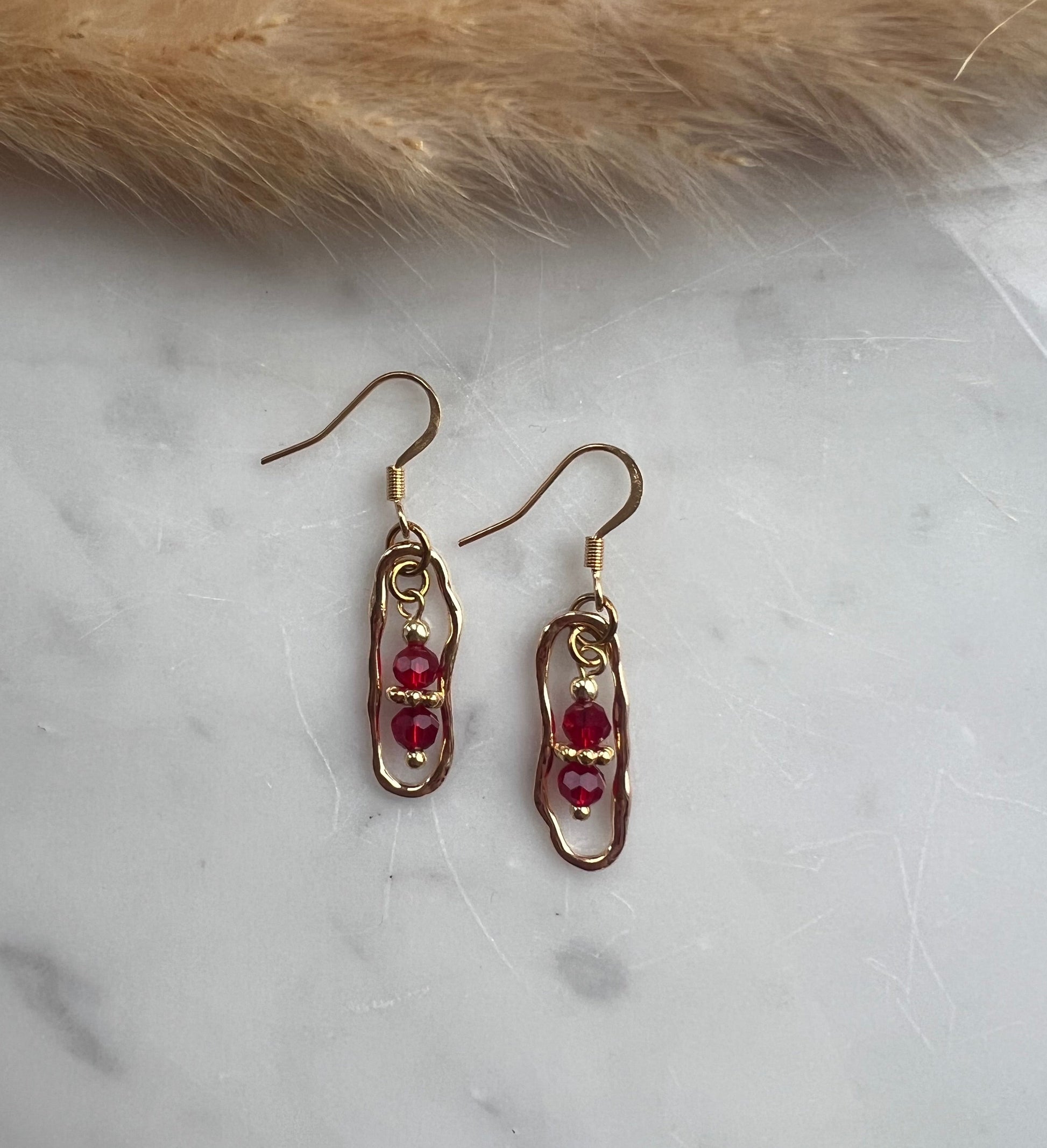 Julelegans i magiskt format har du här. Eleganta och tidlösa örhängen med vackra glaspärlor inramade av en oregelbunden stomme. Perfekta till julens härligheter, eller till dig som älskar rött året runt 😍